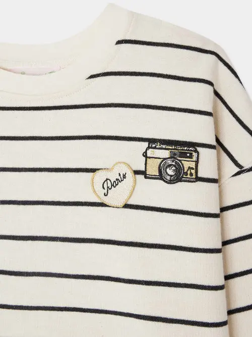 This Gaya sweatshirt appeals to girls with its heart and camera patches on the chest. Its low armholes and soft fleece construction contribute to its comfort.