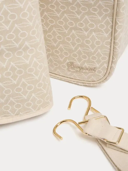 This Denver diaper bag features a delightful woven cherry pattern. It features a practical built-in changing mat and a wide, removable shoulder strap.