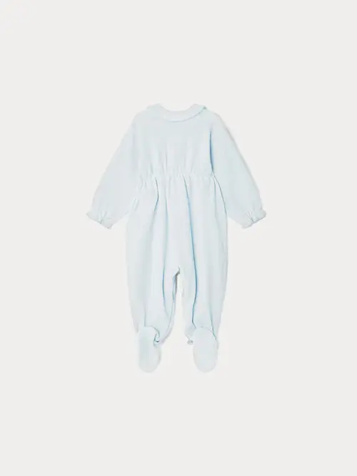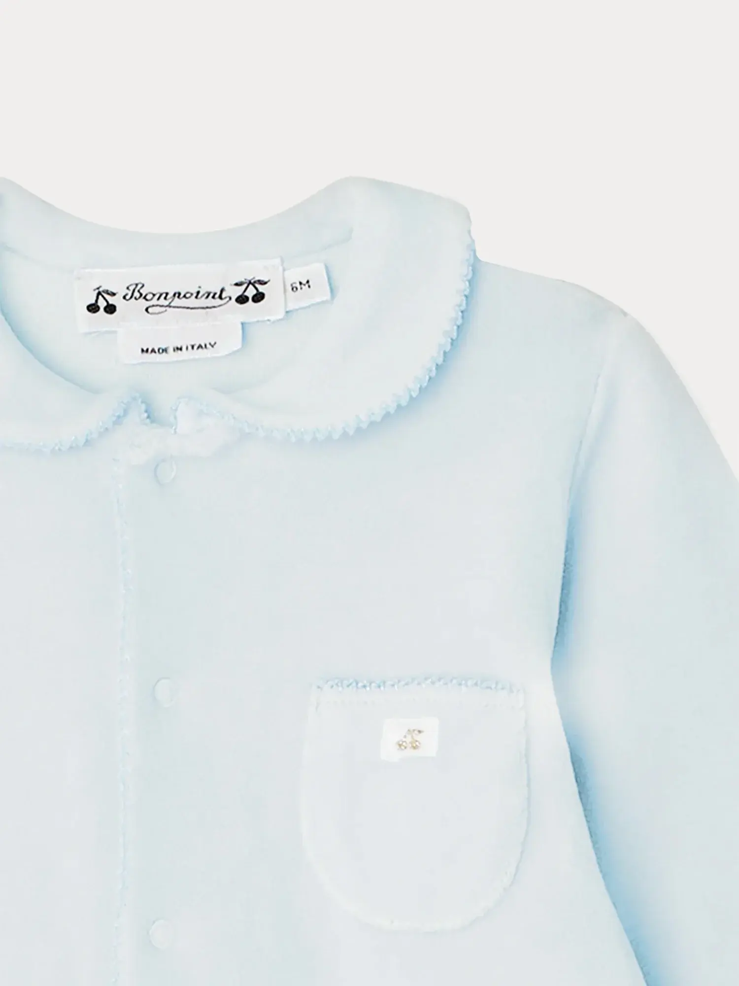 Made from comfortable terrycloth, the Talou baby pajamas are a must-have from the Maison. They feature snap fasteners from the collar to the feet, and the chest pocket is decorated with a cherry-embroidered label.