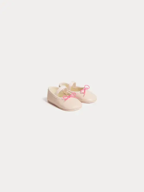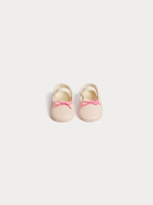 The supple sole makes these Opéra Mary Janes the perfect footwear for your baby's first steps. Their intricate design is embellished with a contrasting bow and a matching elastic strap for easy dressing.