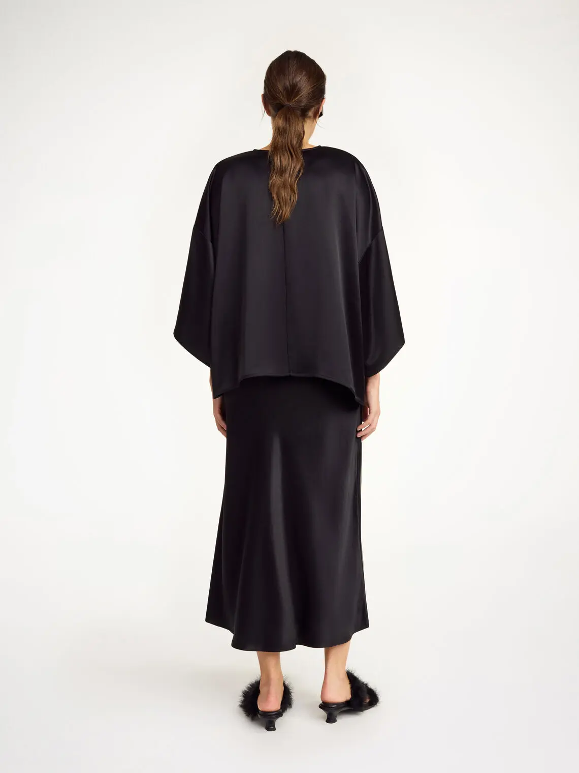 A tried-and-tested wardrobe staple, the Boshan skirt sways gently as you move. Crafted from an effortless fabrication, the A-line design comes with a hidden elastic waistband and midi length. Pair with the long sleeved Fayeh T-shirt to add contrast.