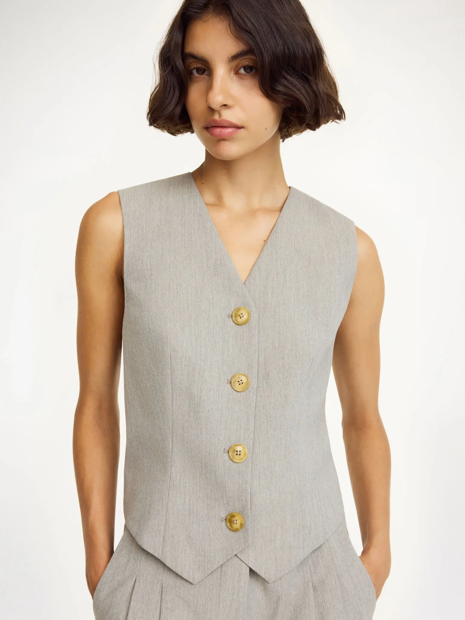 A versatile layering piece for the office, the tailored Occa waistcoat is single-breasted, fastens with a row of buttons down the front and features an adjustable buckle in the back. For a fully coordinated office ensemble, wear with the Cymbaria trousers and Railey blazer.
