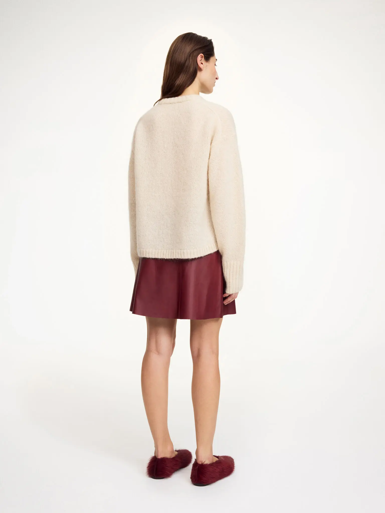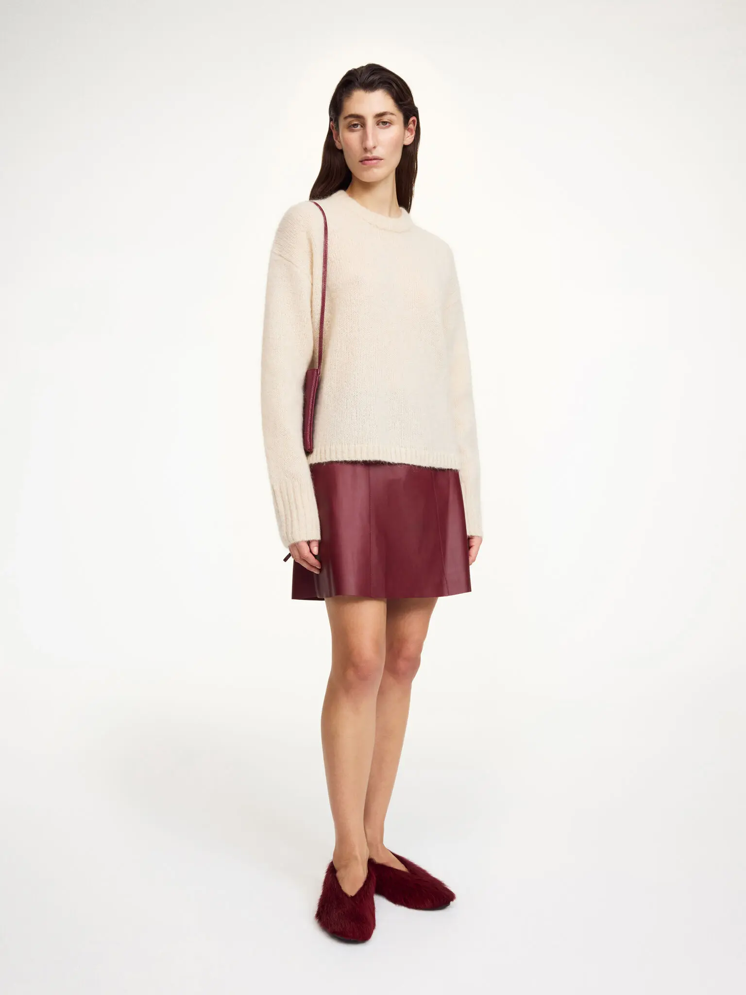 Introduce a touch of edge to your transseasonal edit – courtesy of the Namia skirt. Made in supple leather with a hint of stretch, the minimalist mini design closes discreetly with a zip and hook closure. As the season changes, wear with everything from billowing cotton shirts to voluminous sweaters.