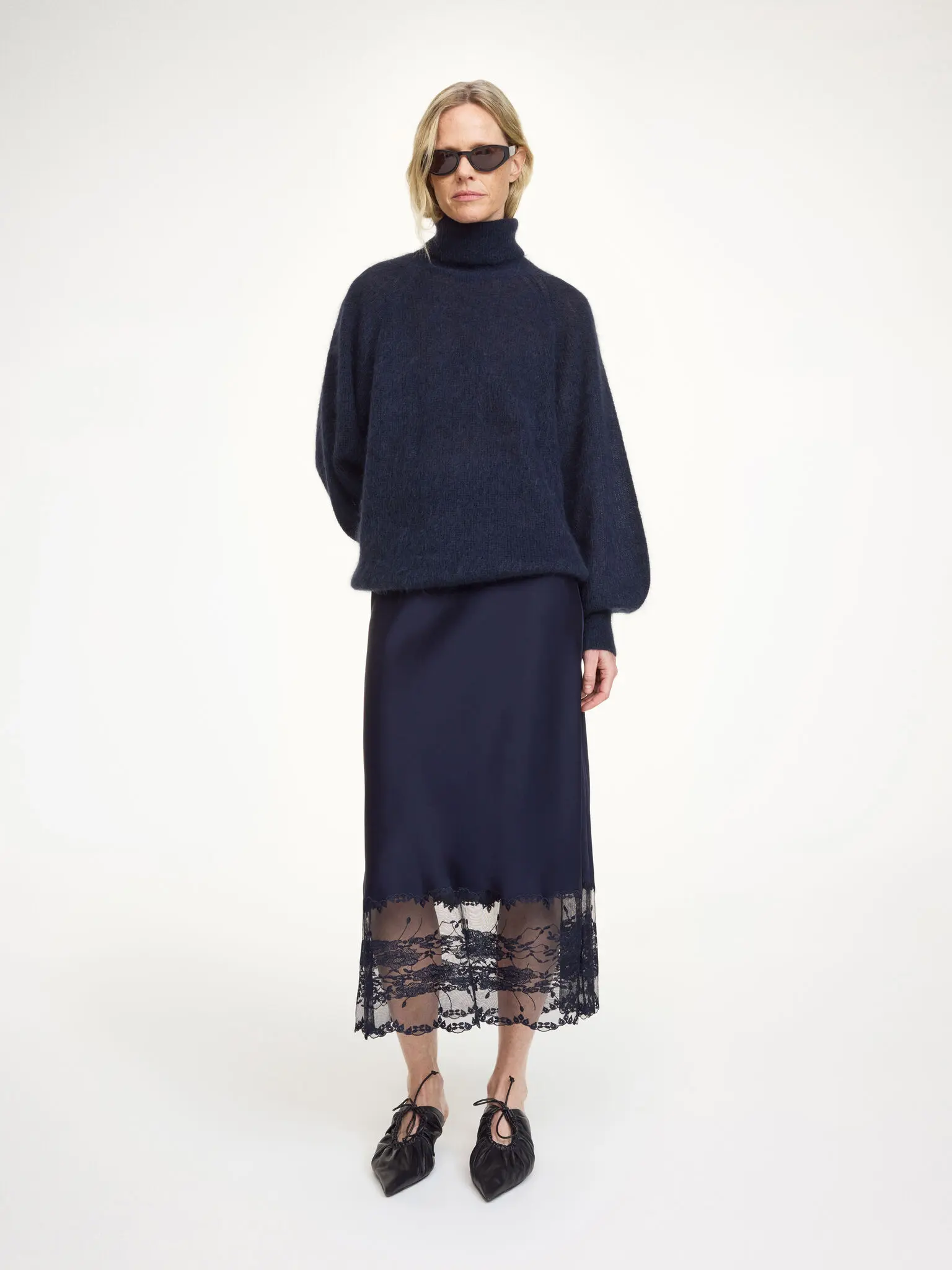 Add a sense of modern bohemia to your year-round wardrobe with the Blake skirt. The maxi design is made in satin and decorated with a delicate lace at its bottom. Equally wearable for festive occasions with the Leeba top or workdays with a casual sweater, it will be a favourite for seasons – and years – to come.