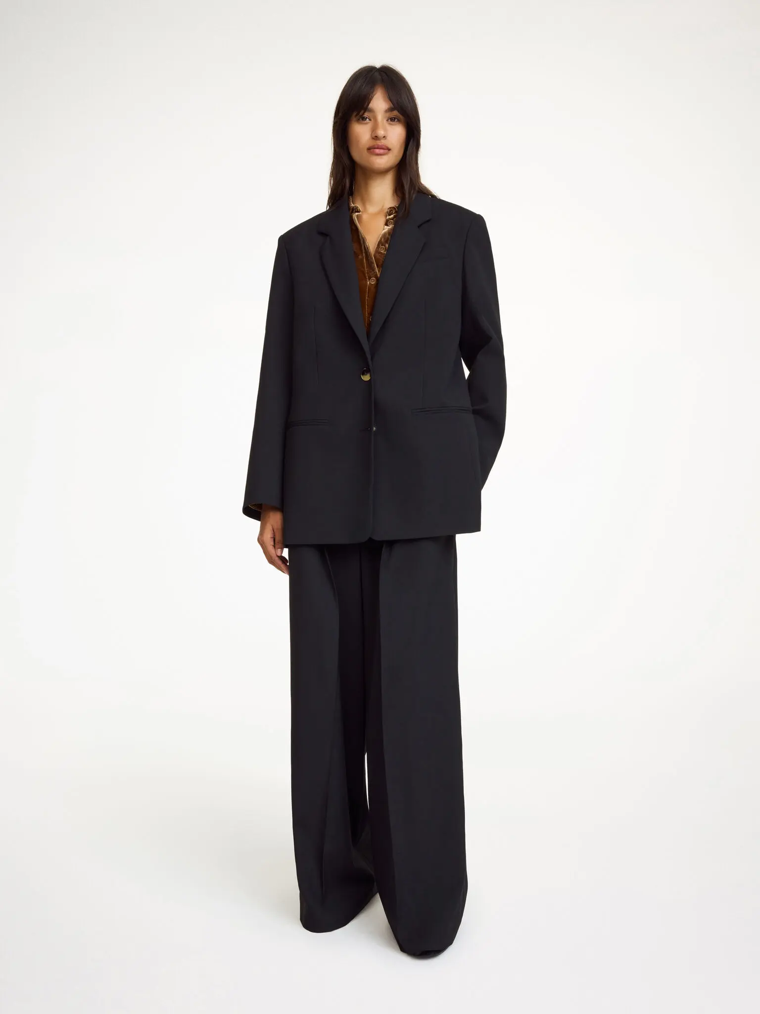 Considered details and expert tailoring define the single-breasted Ophie blazer. Made to last beyond seasons, it features classic details, such as a double vent, front pockets, notched lapels, and an inside breast pocket. For a full tailored look, pair with the Igda trousers.