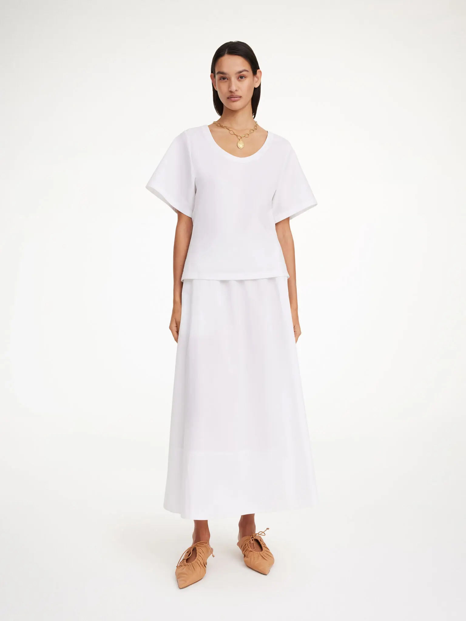 The Pheobes maxi skirt is an essential in your spring edit. The organic cotton design has an elastic band that sits high on the waist and a loose silhouette. Pair it with the Orilla scarf worn as a top on sunny days.