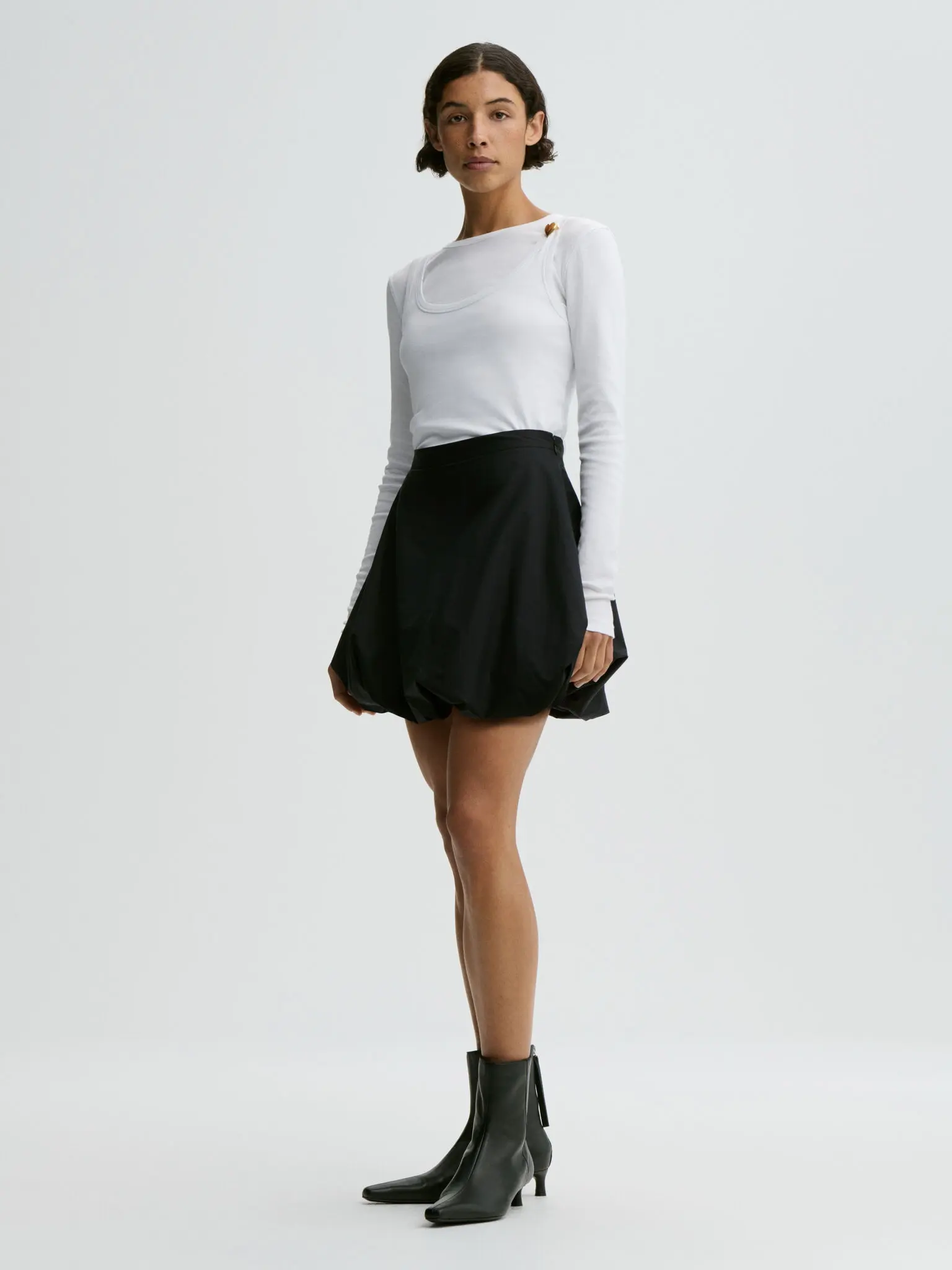 A mini skirt that’s both light and lively – such is the Brey design. Made in a breathable organic cotton, the balloon silhouette – which features a zip and hook closure – will complete any summer edit.