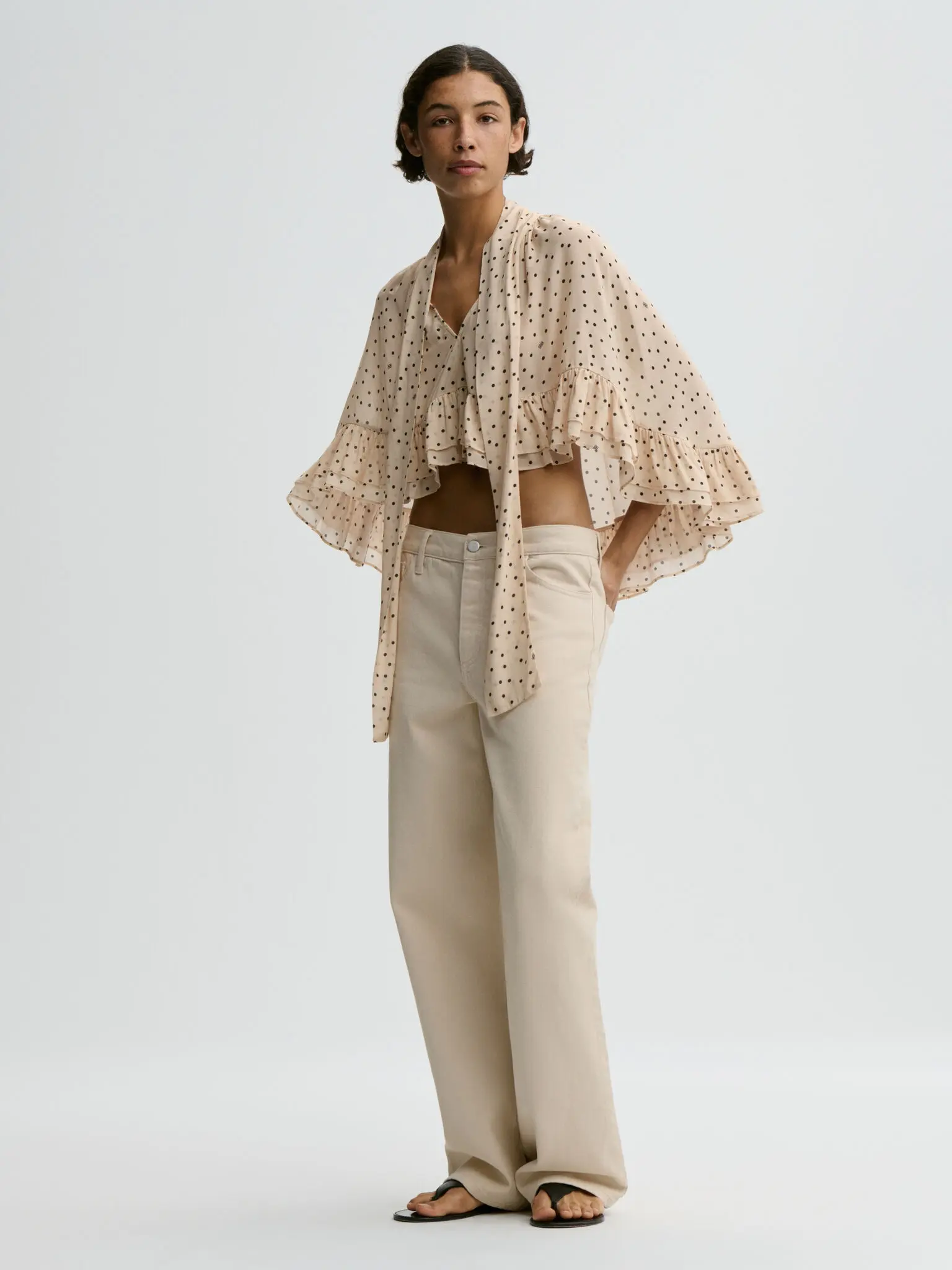 An eclectic design that will instantly infuse the season’s attires with a lively energy – such is the Cedi cape. Designed with voluminous ruffled hems, the design comes with an adjustable scarf and a cropped front – making it the ideal layering piece.