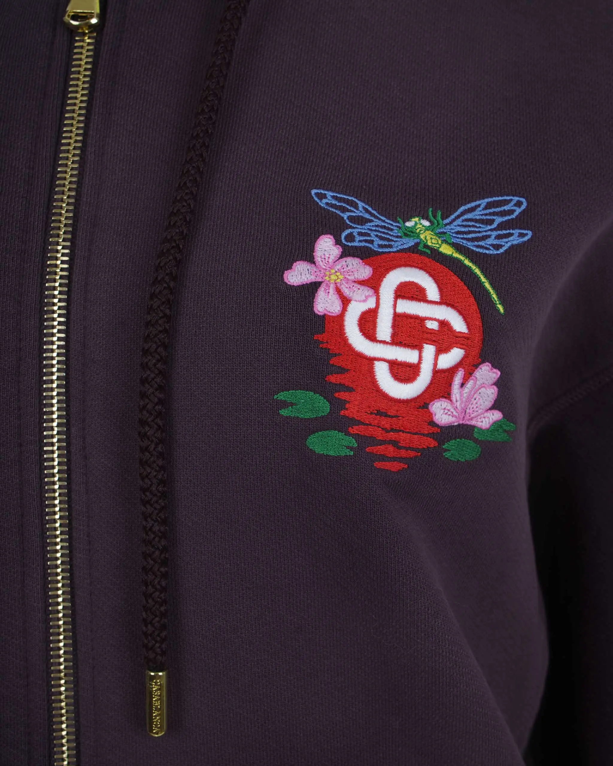 Zip-up hoodie by Casablanca featuring a drawstring hood, embroidered logo at the chest, side welt pockets, and ribbed trims.