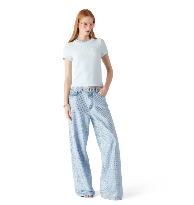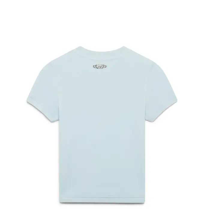 The velour short-sleeve t-shirt is a classic design featuring the house's warped logo embossed at its centre. Completed with a classic ribbed crew neck and a slim silhouette.
