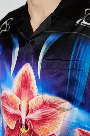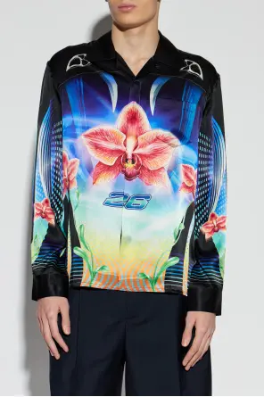 The entire surface is adorned with a digital print—multicolored, monumental orchid flowers set against a background of modern geometric forms. The artistic vision is completed by the graphic number “26” on the front, bestowing the shirt with a unique character, as well as the logo and striking “CASABLANCA” inscription on the back.