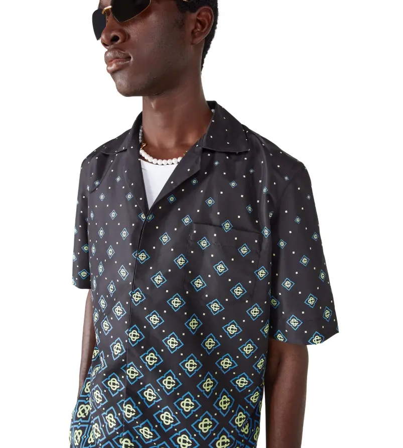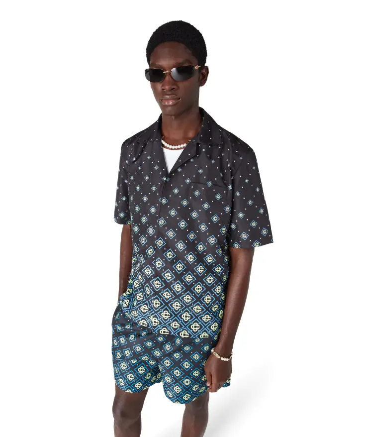 The Degrade Black Monogram swim shirt is a refined technical design featuring the house's monogram pattern. Completed with technical swim fabric construction, short sleeves, button closure, interlocking CC logo corozo buttons and sophisticated detailing that captures the brand's elevated approach to swimwear.