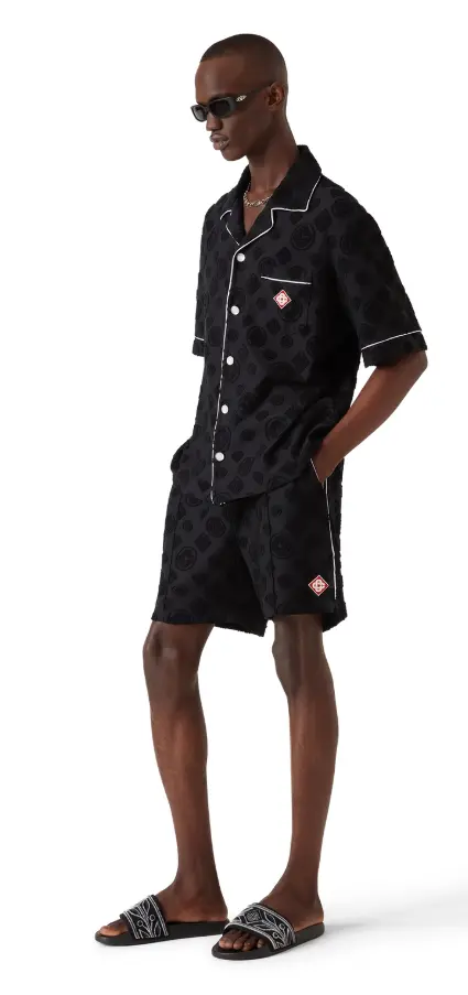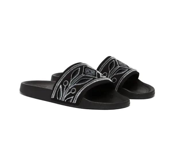 The men's pool slides are crafted from embroidered terry fabric and feature the house's diamond logo and signature Laurel artwork on its uppers. Completed with a sculpted footbed for elevated comfort and a textured rubberised sole that blends performance with leisure.