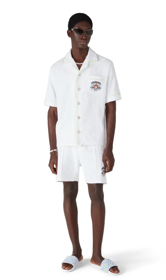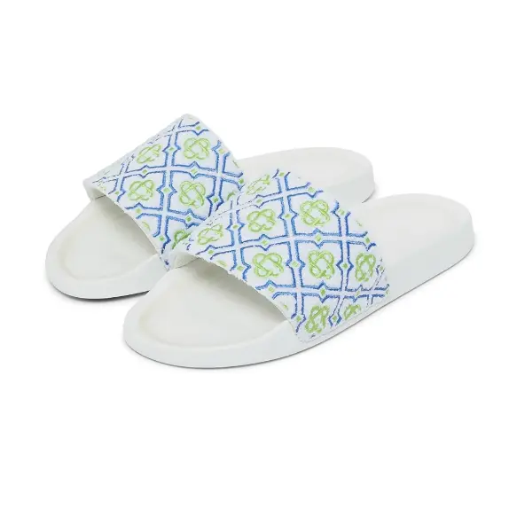 The men's monogram pool slides are a refined design crafted from monogram towelling fabric and feature the house's diamond monogram on its uppers. Completed with padded rubber soles.