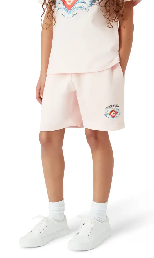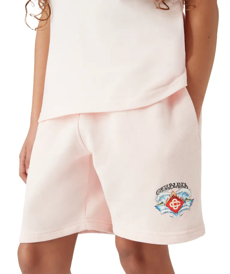 The Children's Waves Shorts features a symmetrical wave formation breaking over the house's diamond brand logo edged by flames. Completed with an elasticised waistband, drawstring fastening, side pockets, and a relaxed silhouette.