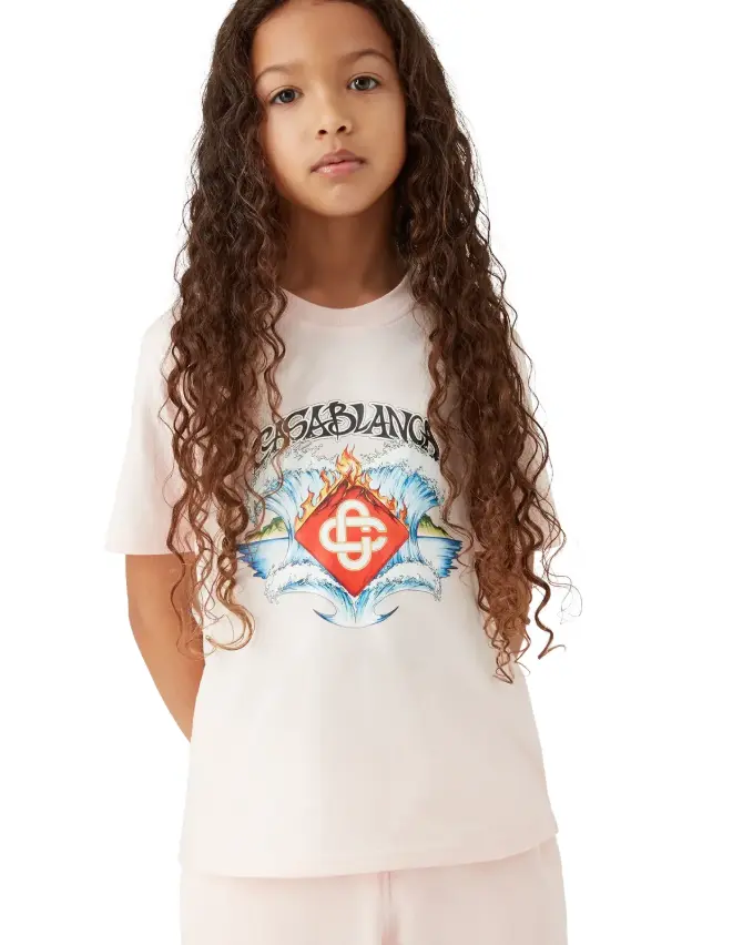 The Children's Waves Short Sleeve T-shirt features a symmetrical wave formation breaking over the house's diamond brand logo edged by flames. Completed with a classic crew neck, short sleeves, and signature detailing that captures the brand's approach to casualwear.