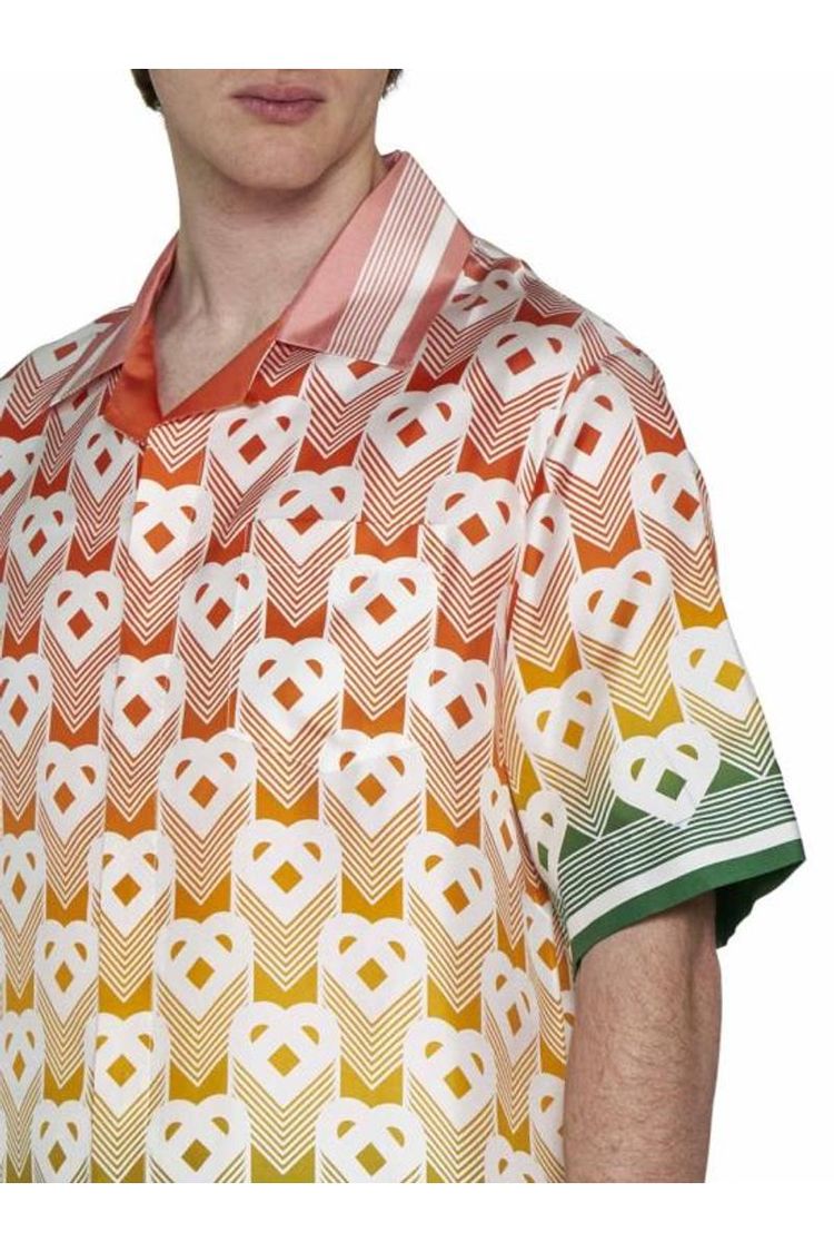 Made from pure silk twill, this soft and flowing shirt features a unique heart monogram dégradé pattern throughout. It also boasts a Cuban collar, hidden button