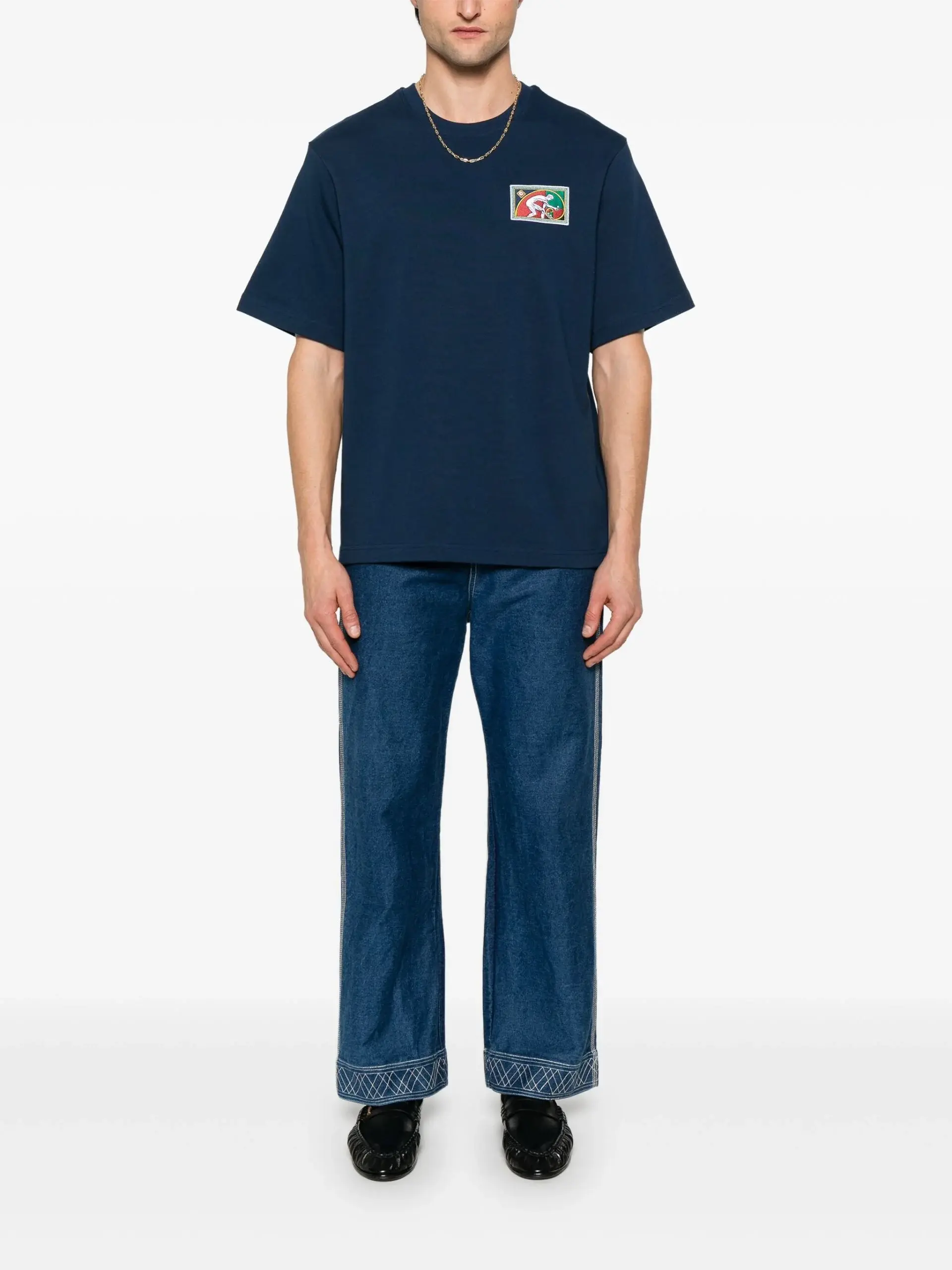 Navy blue Made from organic cotton Crew neck Appliqué detail on the chest Short sleeves Straight hem