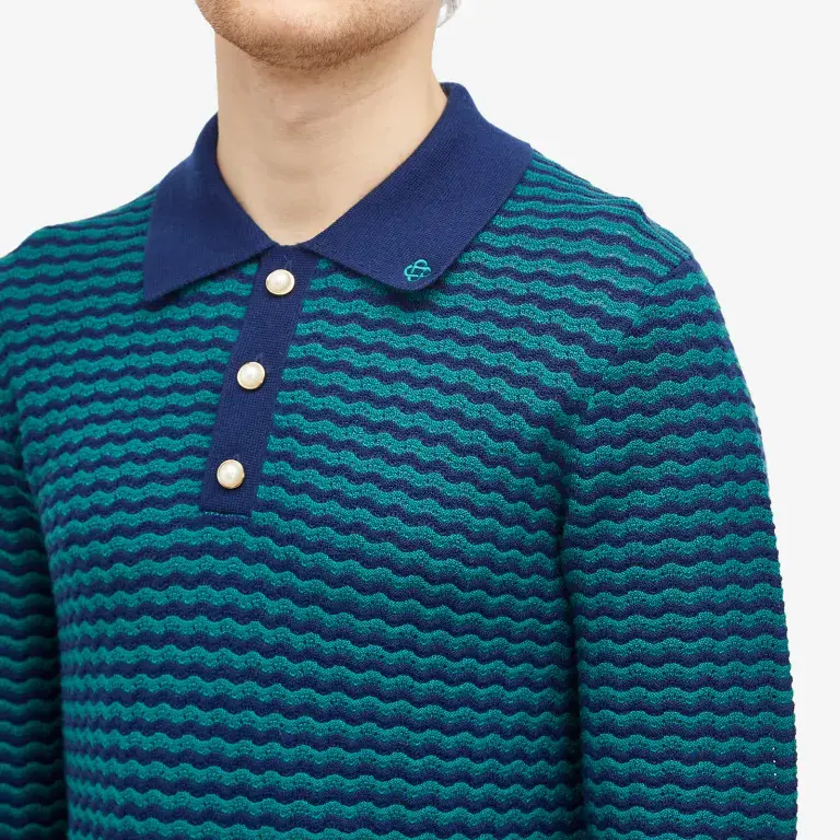 Upgrading smart casual ensembles, this Casablanca Mini Wave Polo Shirt is knitted from a merino wool fabric. Designed with long sleeves for a touch of refinery, look out for contrast trims and an all over wave print.