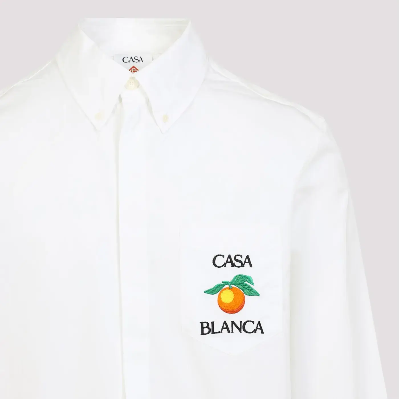Casablanca Long Sleeve Embroidered Orange Oxford Shirt
