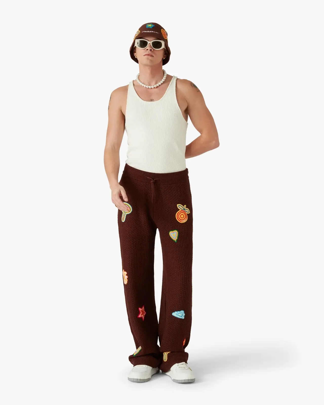 The boucle rib vest is a sleeveless textured design crafted from a boucle cotton blend fabric. Completed with a scoop neck and a racer back with the house's signature diamond logo.