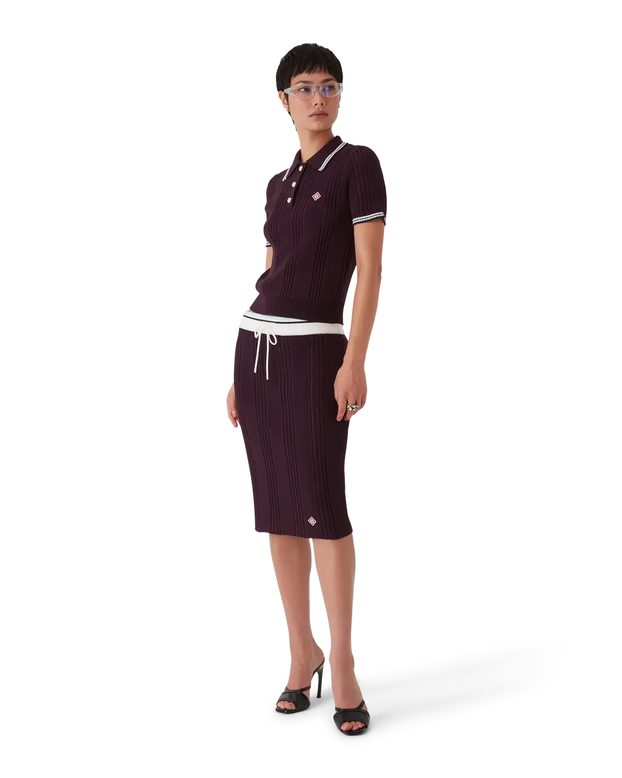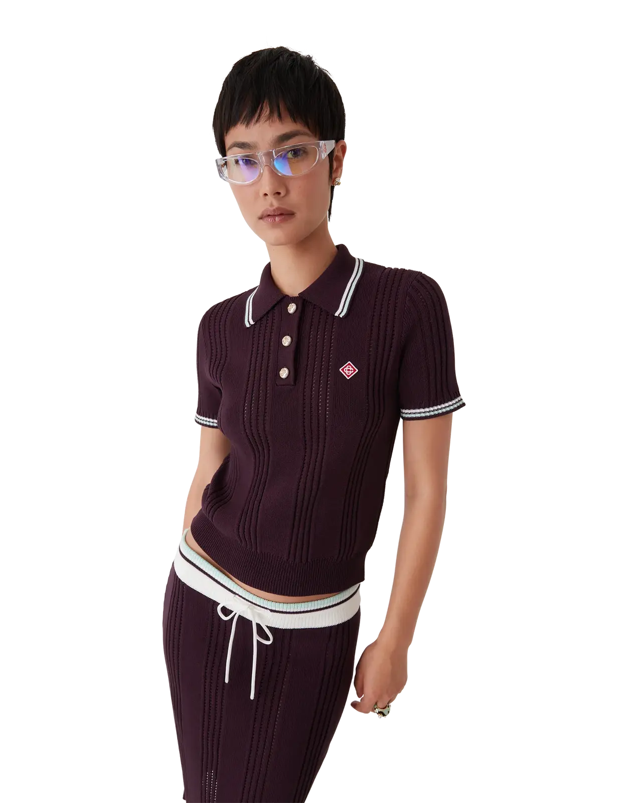 The cotton knit short-sleeve polo is a classic design featuring the house's signature diamond logo, crafted from cotton fabric. Completed with a rib collar and cuffs, an elasticised hem, signature gold rim pearl buttons, and stripe edge detail on the collar and cuffs.