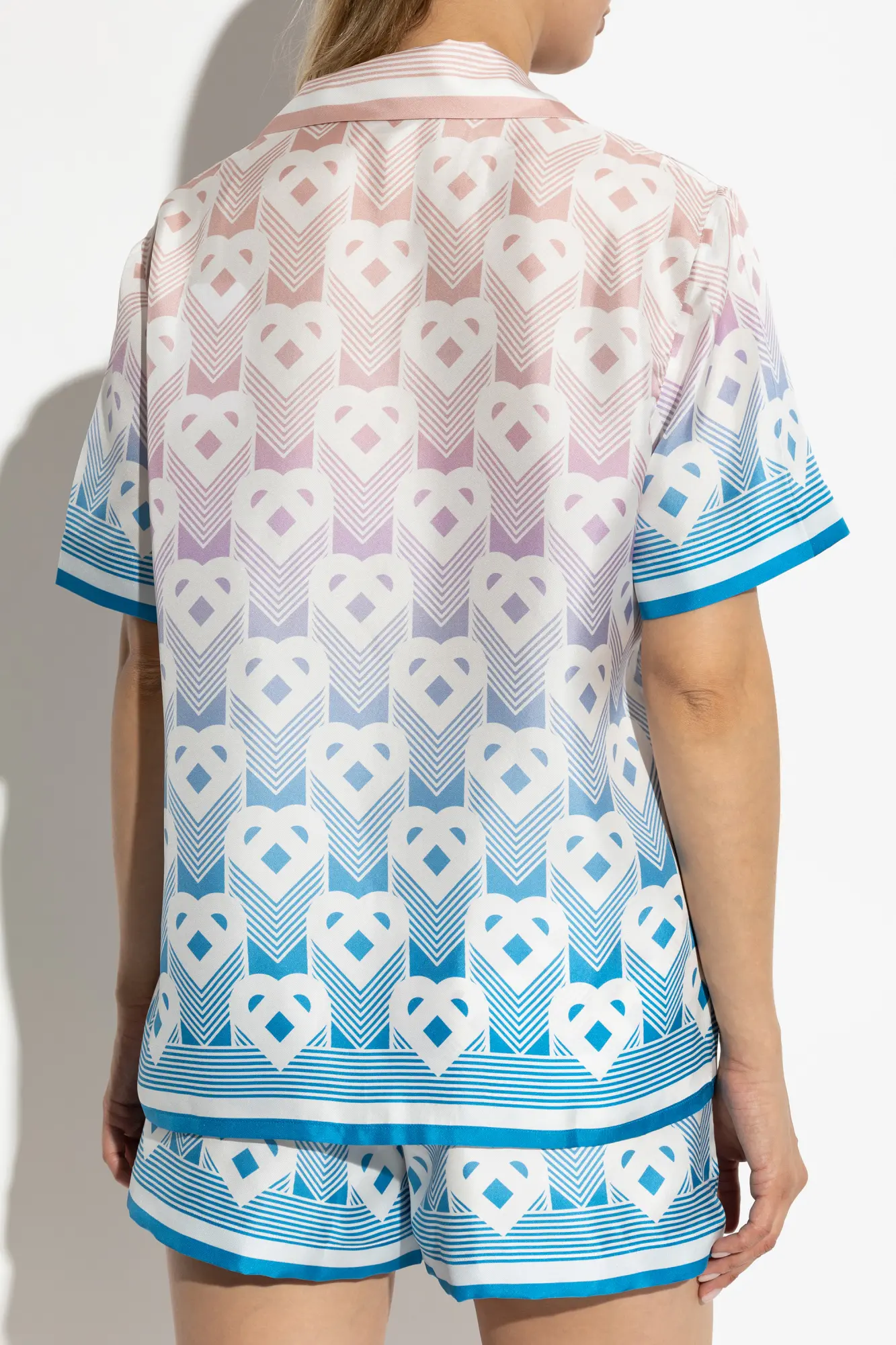 Gradient Heart Monogram Silk Short Sleeve Shirt