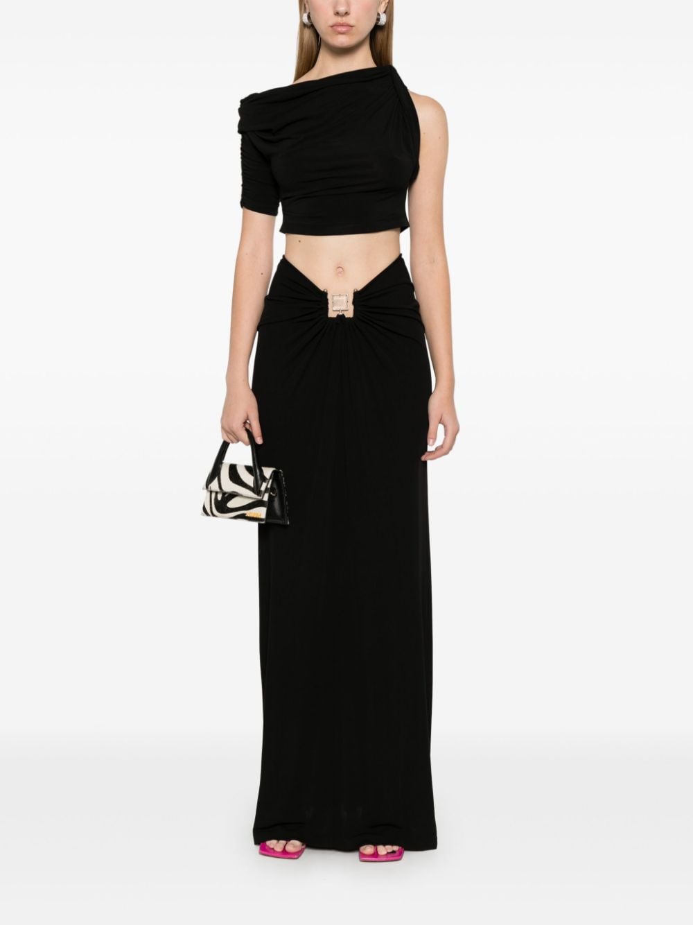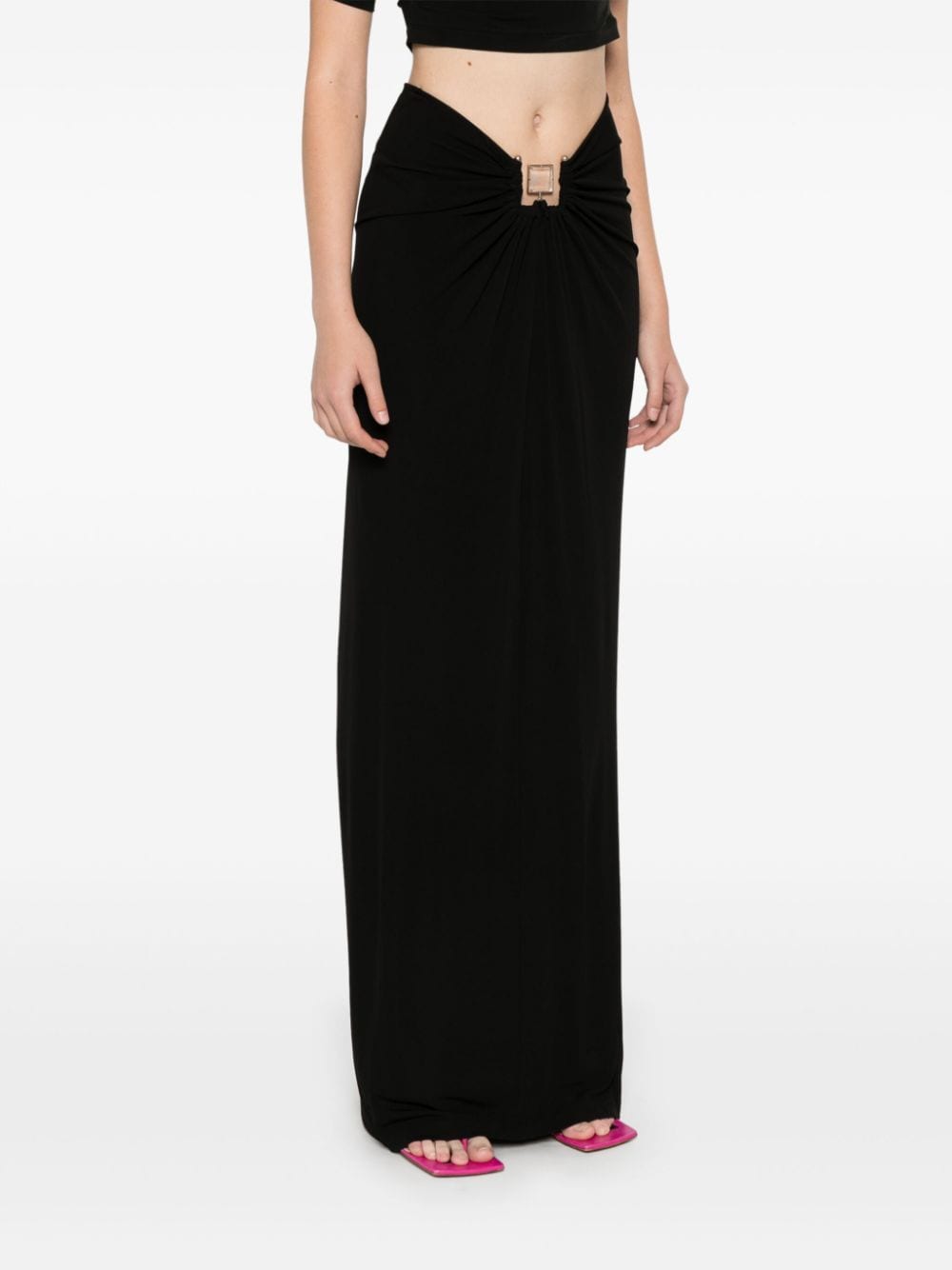 Black textured finish quartz detail concealed rear zip fastening hardware detailing straight hem long length Composition quartz 100%, Viscose 100%, Brass 100% Washing instructions Dry Clean Only