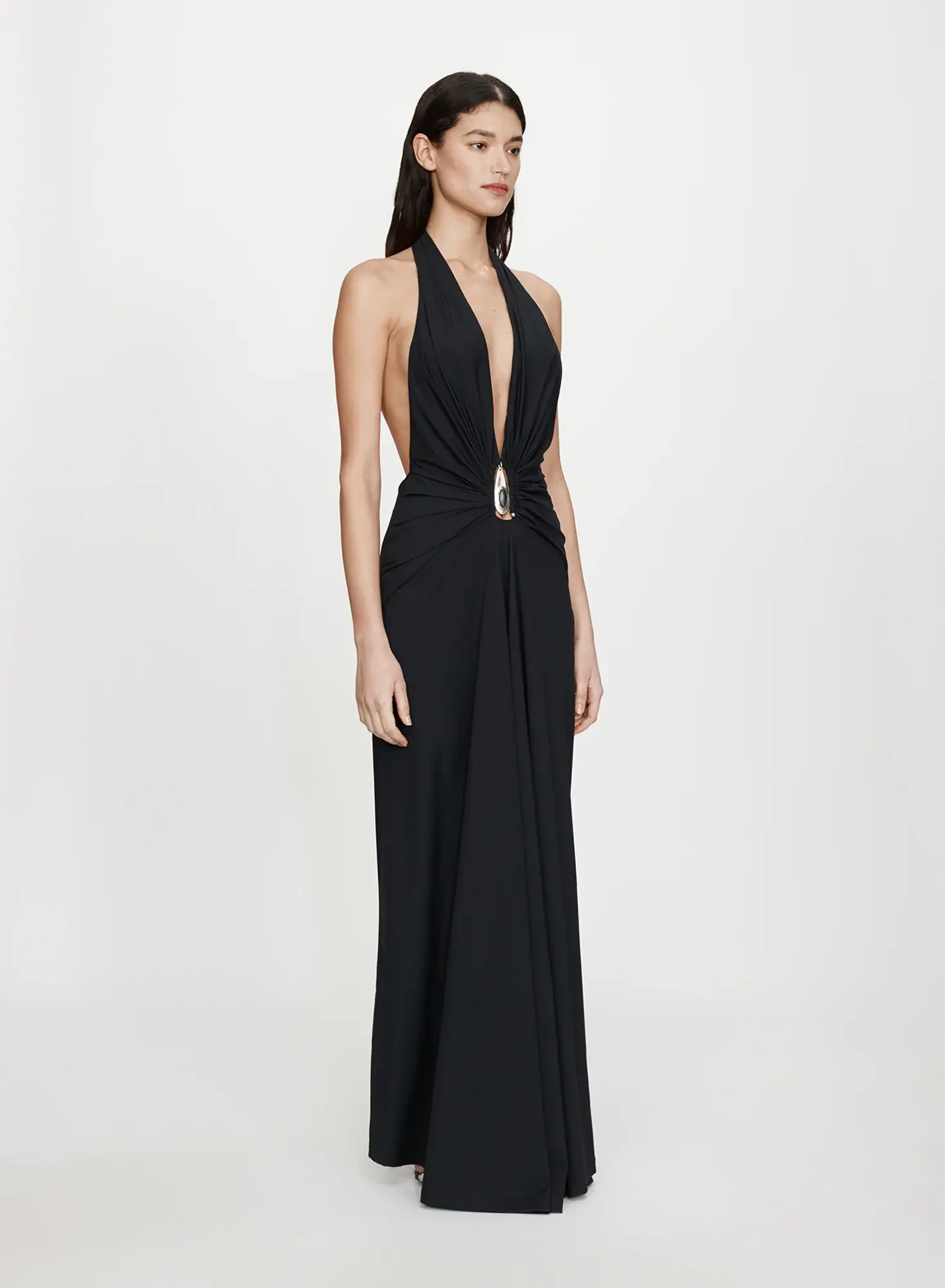 Crystal Pendant Ruched Lycra Halter Dress