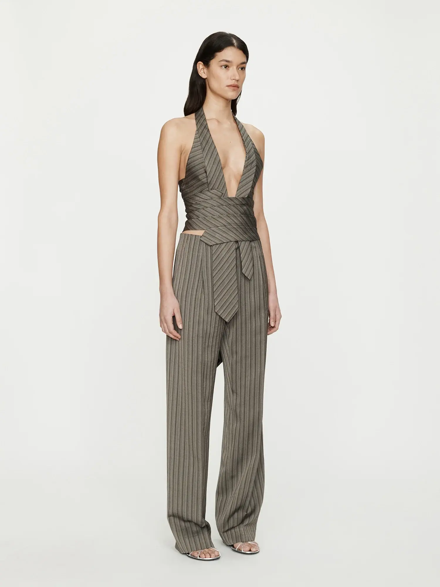 The Reyer Tailored Redux Trouser redefines tailoring through relaxed proportion and directional finish. Cut from striped viscose suiting, the silhouette falls straight through the leg with soft drape and a structured waistband.