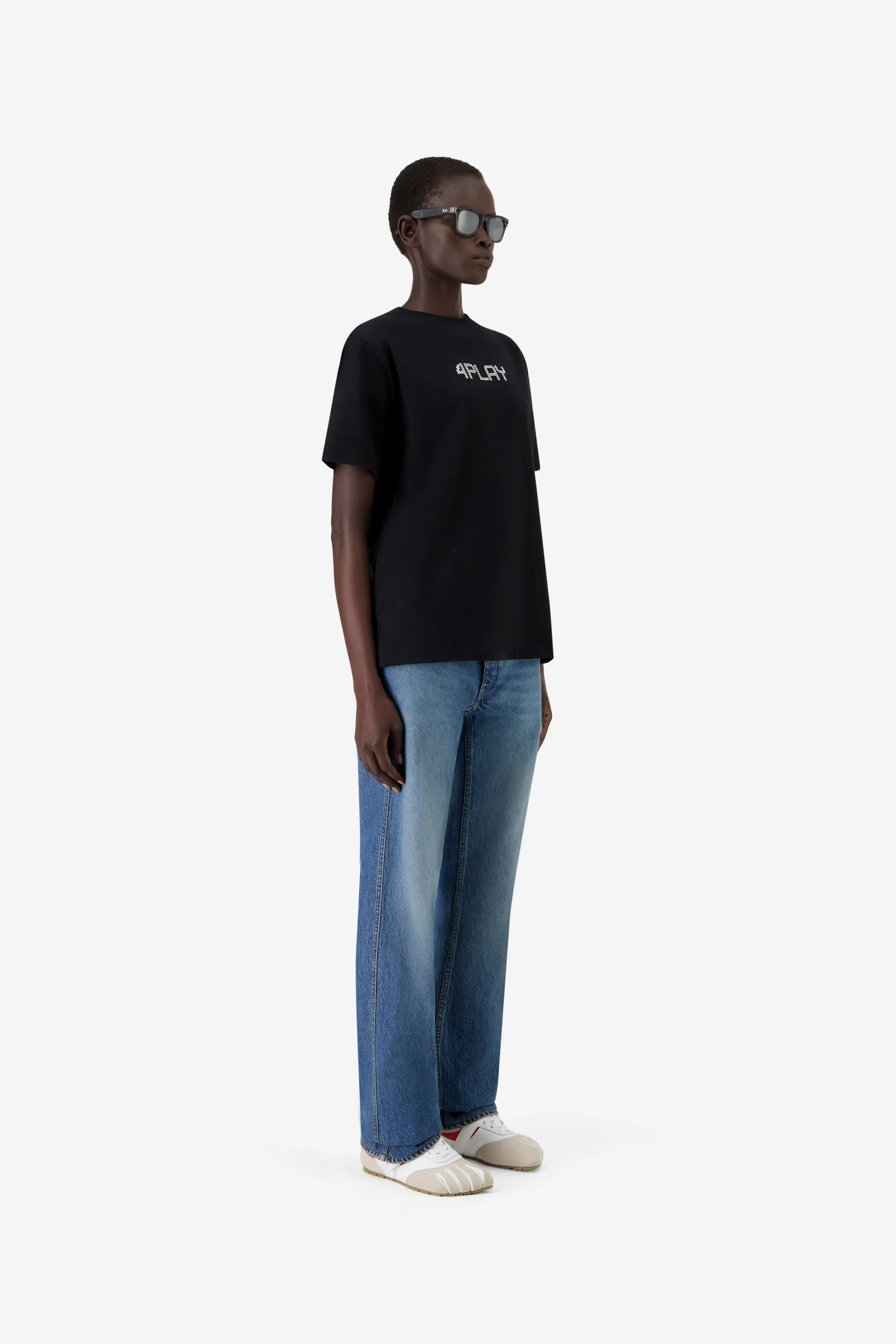 This Boxy Tee features our pixel-style '4 PLAY' slogan at the chest. Cut from pure cotton, its oversized silhouette and structured shoulders give it a modern, street-ready feel that balances softness with statement.