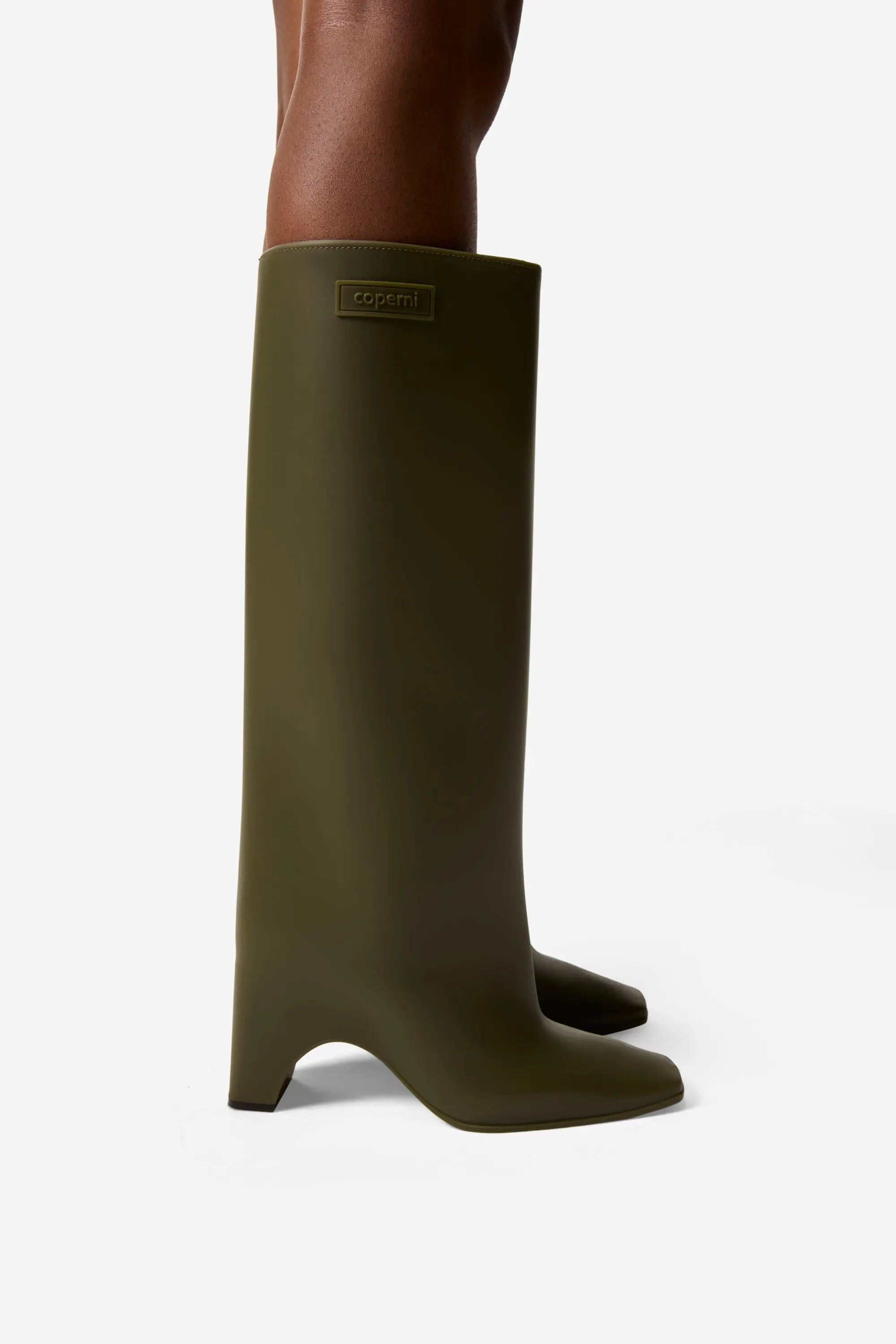 Hot on the heels of our classic Bridge Boots is this rubber pair, perfect for bad weather days. Like the original design, this stylish sage green iteration draws its name from its arched sole and features a block heel and a minimal, square-shaped toe. They come with inserted socks for extra comfort and support.