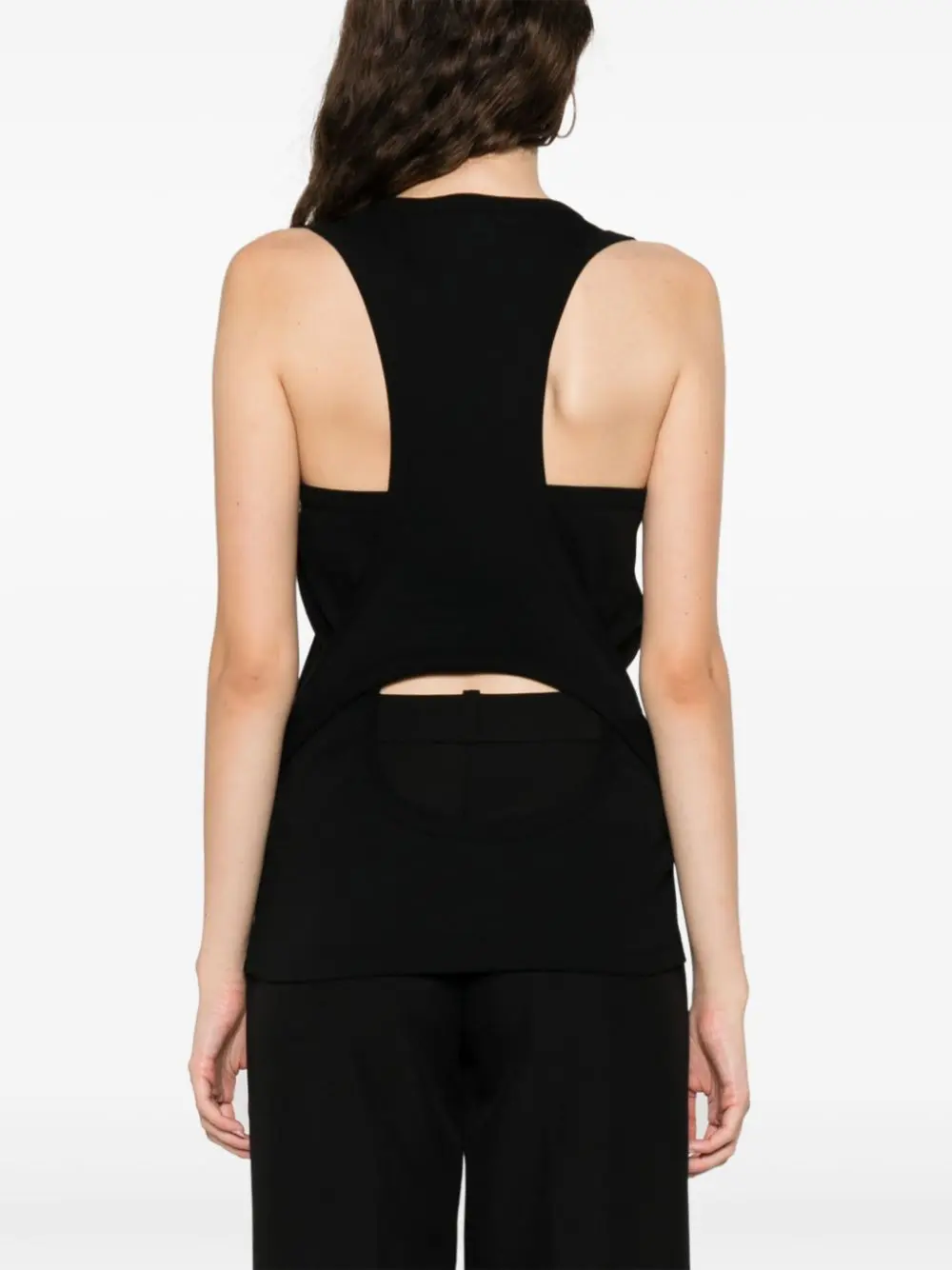 Simple and versatile, this slim fit tank top is crafted from soft ribbed cotton. With a flattering scoop-neck silhouette and wide straps it is cut for a long look, so that it can be easily tucked in or gently gathered around the waist