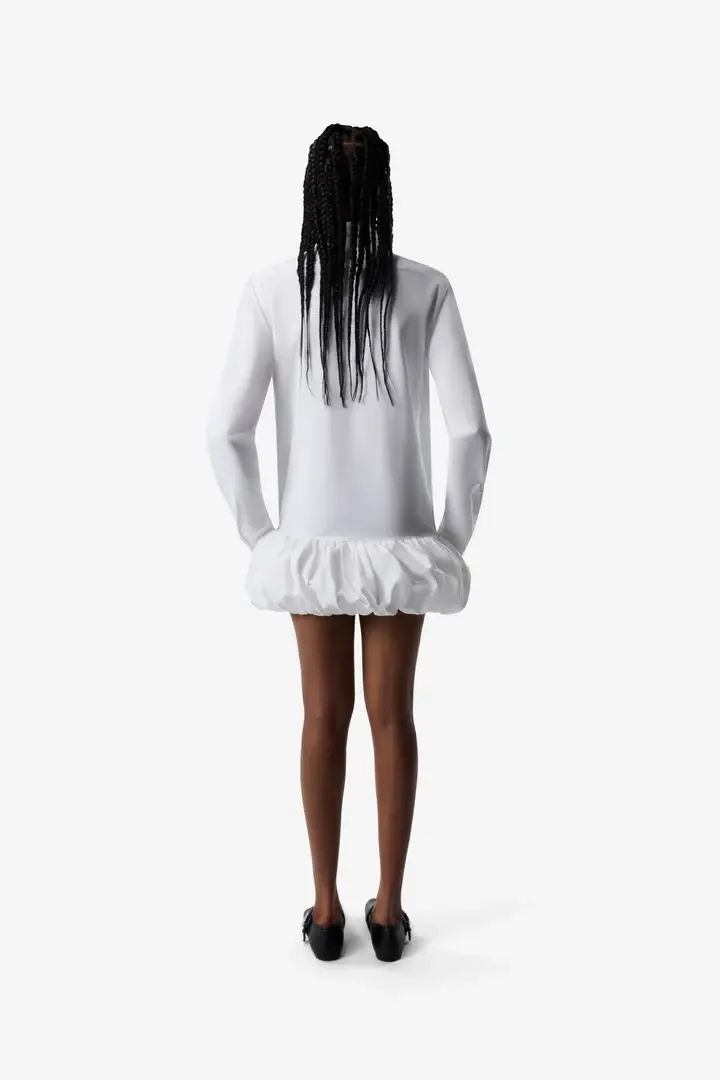 Mixing signature shirting with inventive deconstruction, this dress plays with different proportions to create new Coperni classic. Crafted from premium white cotton, the top half is a loose, button-down shirt that skims the top of the hips where a defined seam introduces a voluminous puffball miniskirt. A green Coperni crest logo adds a sporty touch to this fresh and playful style.