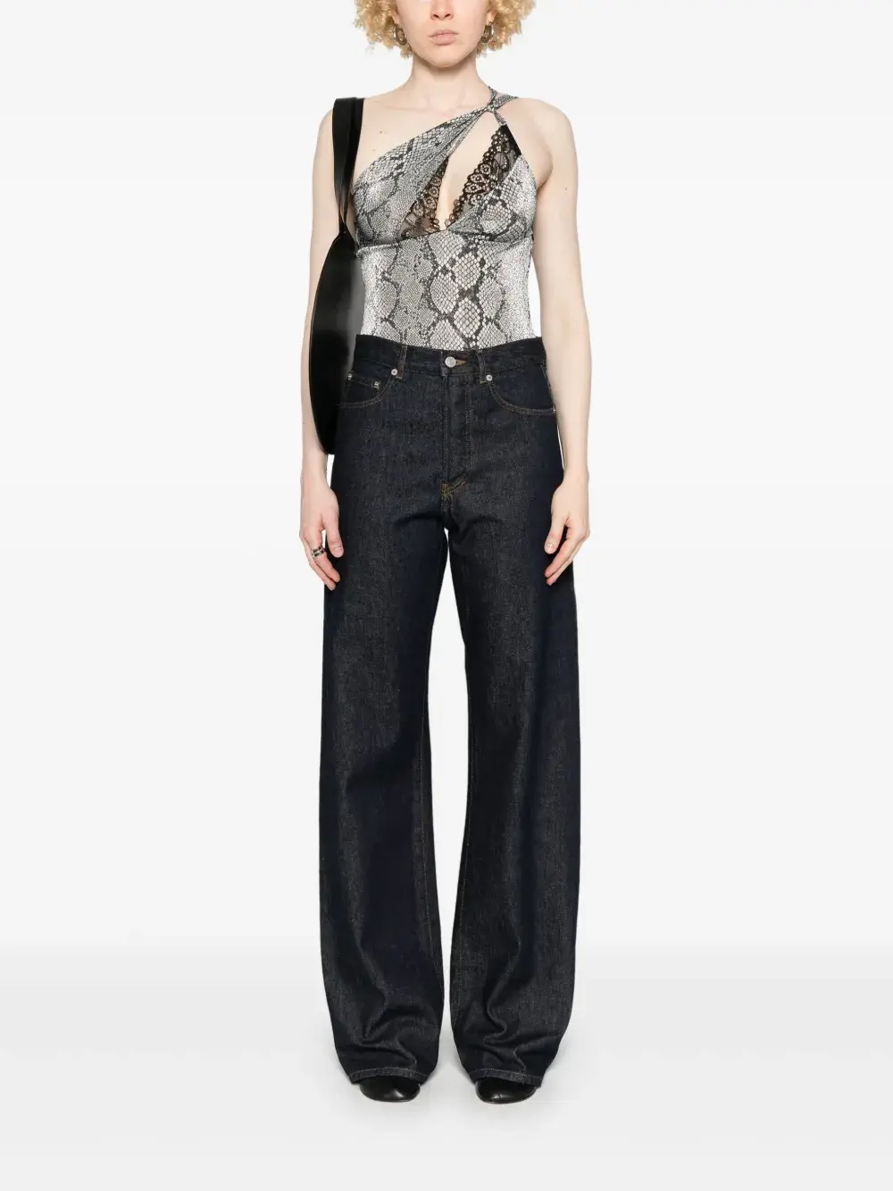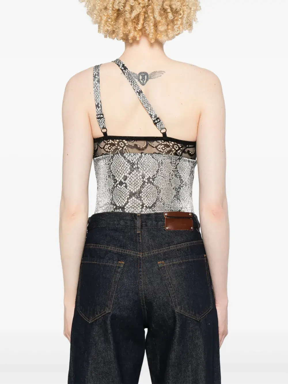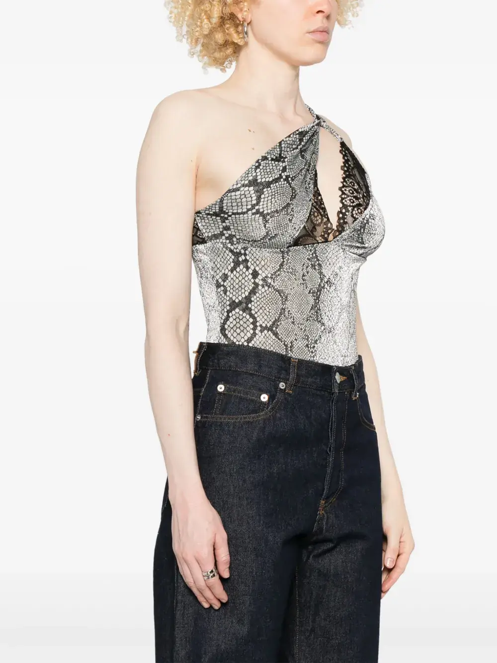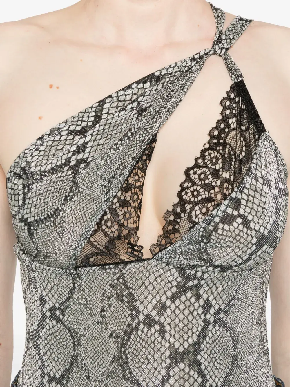 light grey snap-fit fastening two adjustable shoulder straps halterneck snake print Just a reminder that this piece must be tried on over your own garments.