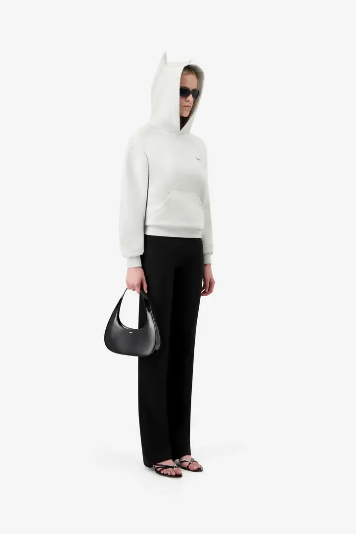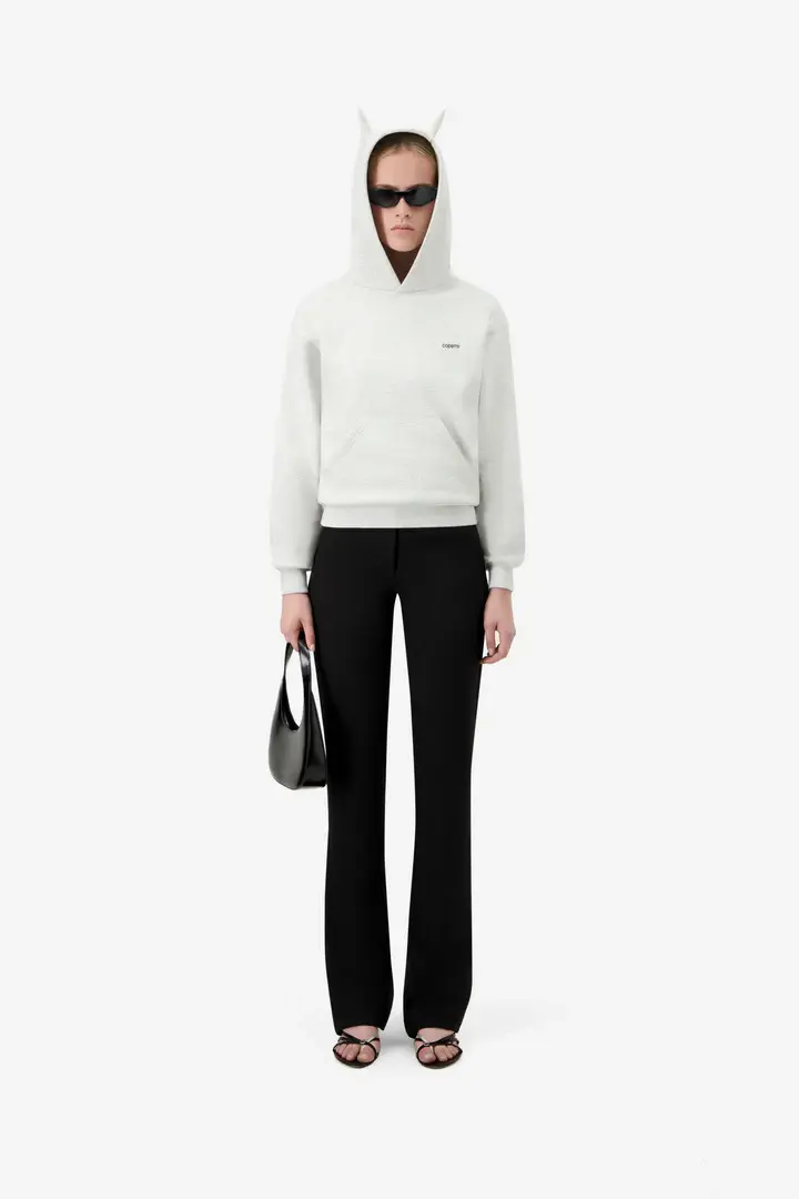 A cozy essential with a rebellious twist. The organic cotton Horn Hoodie brings Coperni's signature attitude to a classic silhouette. It features subtly sculpted horn-like details on the hood and a minimalist embroidered logo on the chest. The cropped yet relaxed shape offers an effortless comfort for everyday.