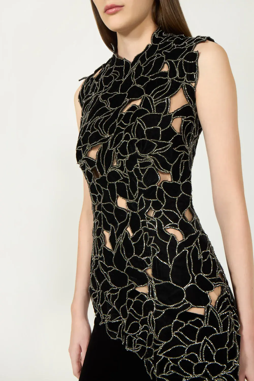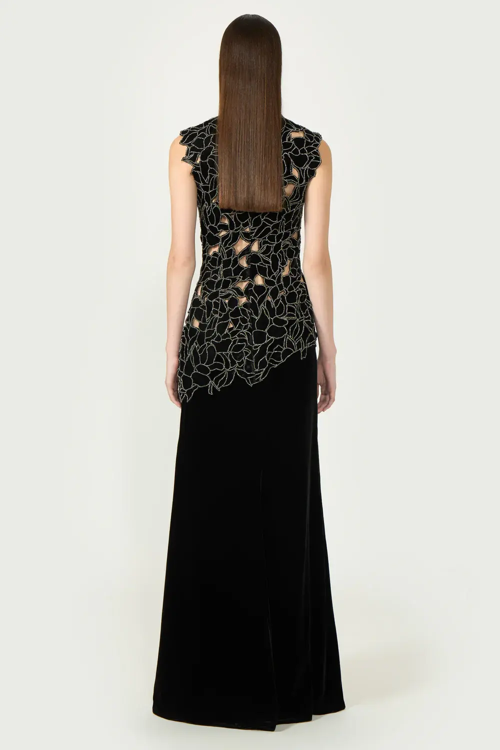 With its flowing velvet silhouette, intricate floral-cut lace detailing and delicate crystal trims that catch the light with every movement the Serisa is the perfect gown for unforgettable occasions.
