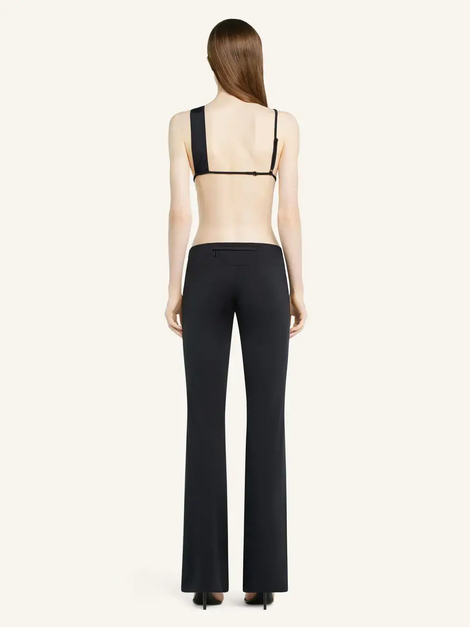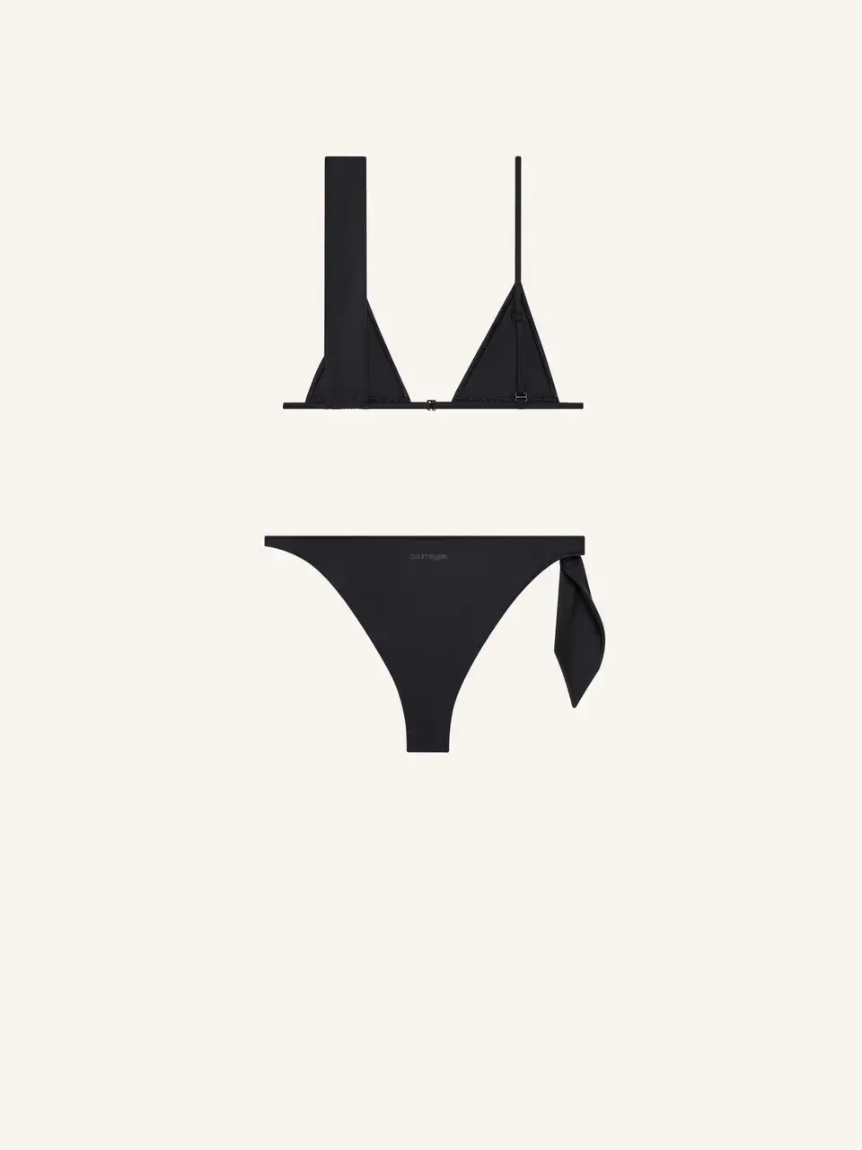 Bikini with metal loop at strap and adjustable scarf detail at bottom. "Courrèges" tonal printed logo at bottom back.