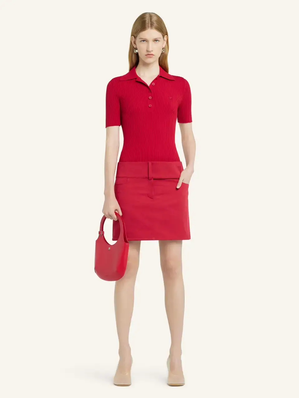 Rib-knit polo shirt with short sleeves and buttoned neckline. AC logo on chest.