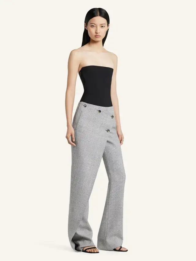 Strapless jersey bodysuit with lingerie detail at back and embroidered AC logo on the front.