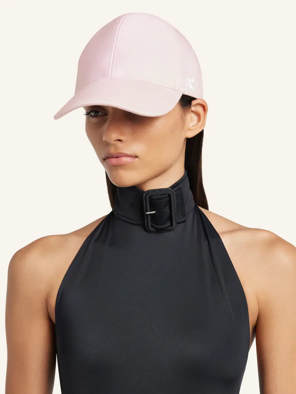 "Courrèges" signature cotton cap with embroidered AC logo on side and adjustable plastic closure at back.