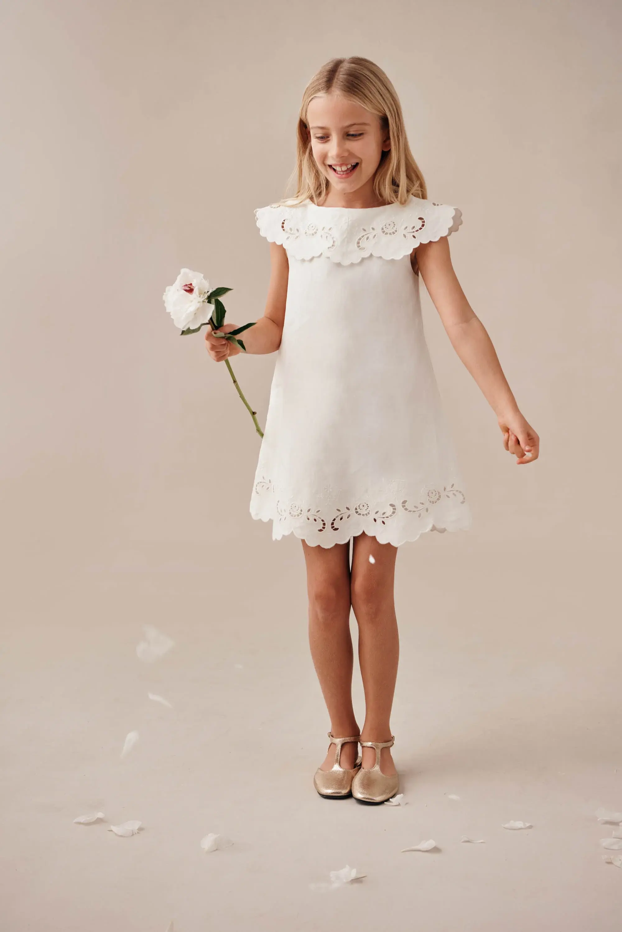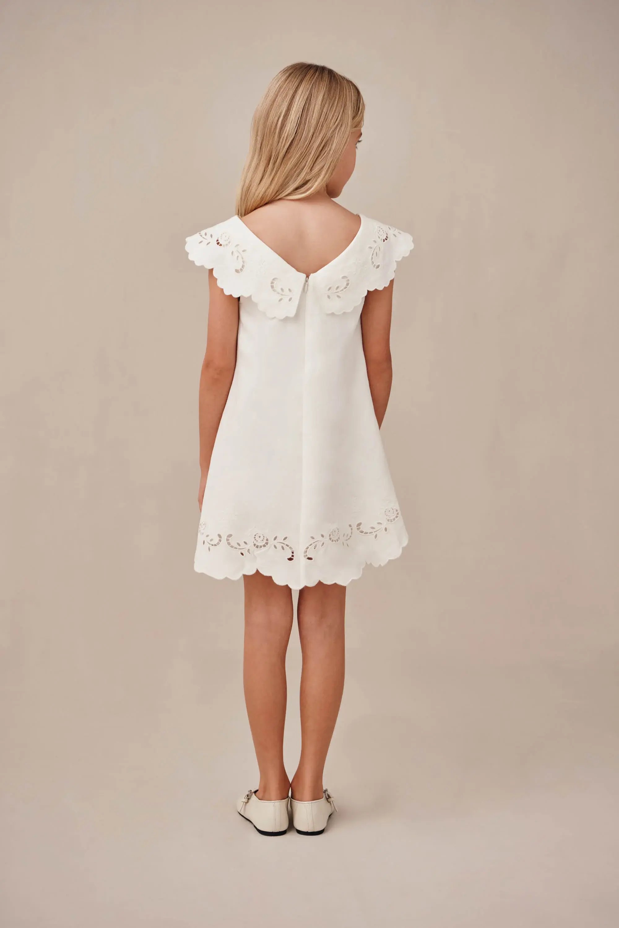 — Embroidered scalloped collar and hem