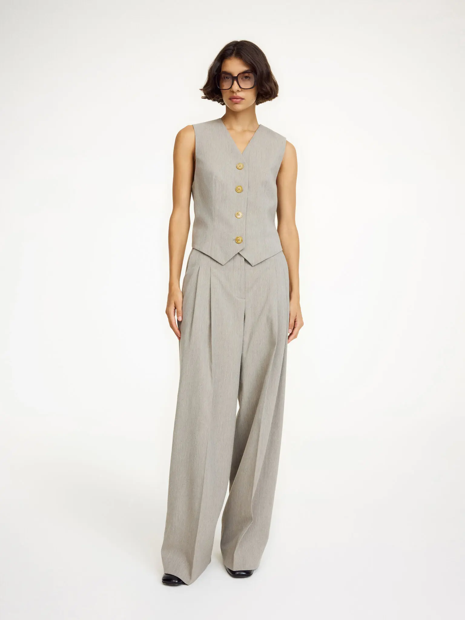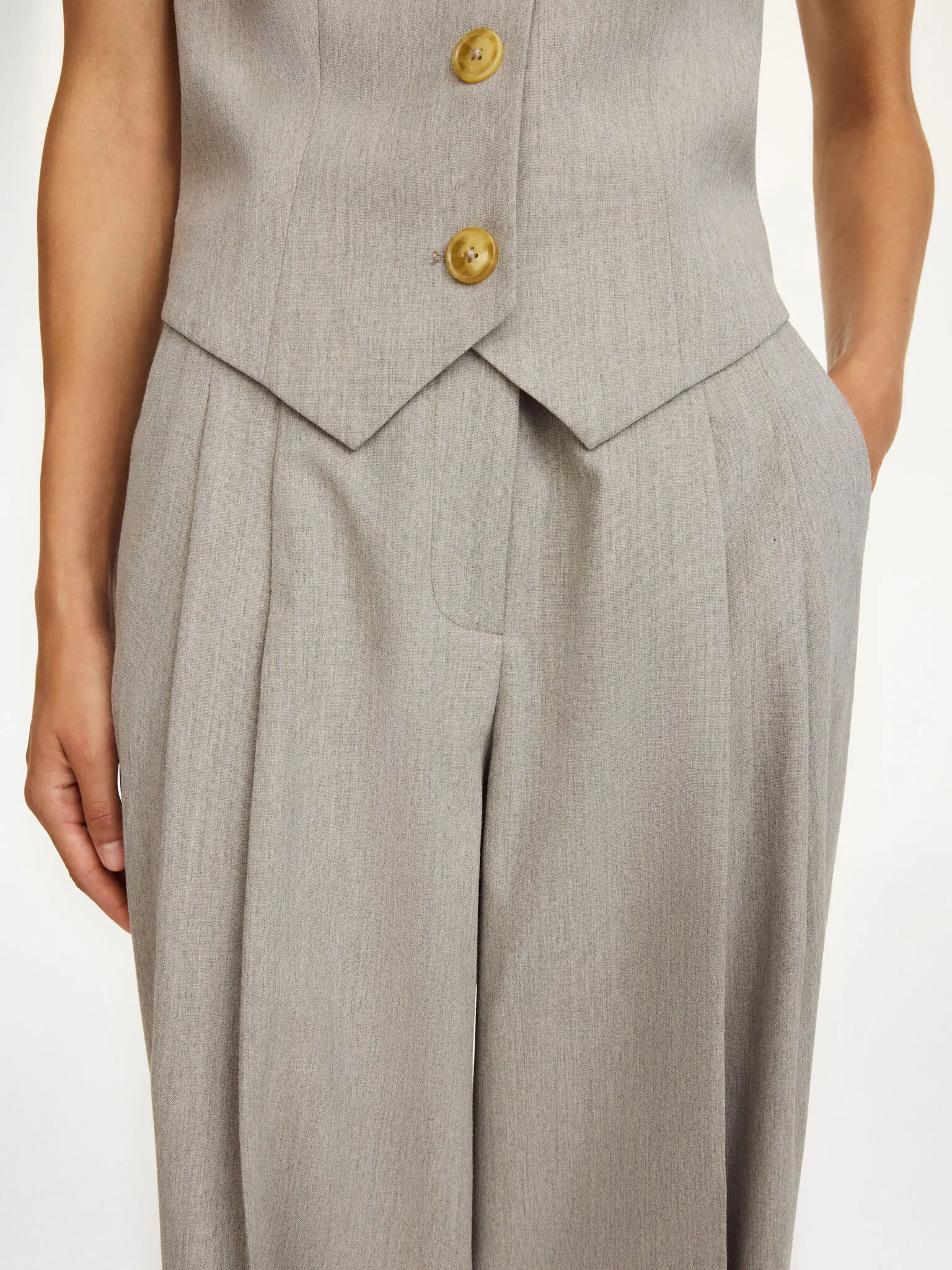 Combining ease and elegance, the tailored Cymbaria trousers are made for both the office and the after-hours. The high-waisted design features wide legs, pressed pleats, and belt loops. Pair with its coordinating Railey blazer for work.