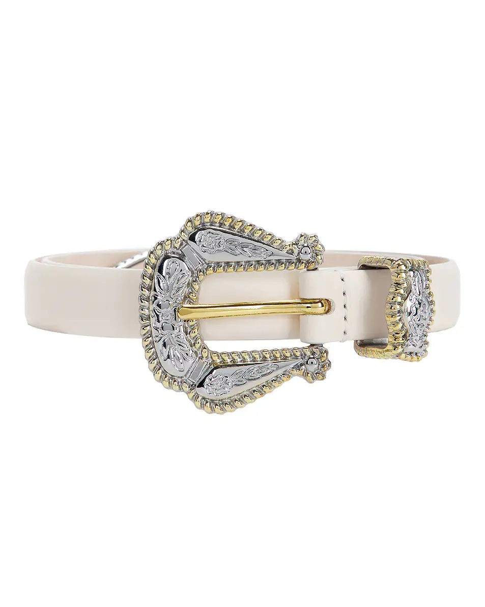 The Santo is a western-inspired buckle rendered in mixed metals, with intricately carved detailing that evokes heritage ornamentation through a sculptural, contemporary lens.