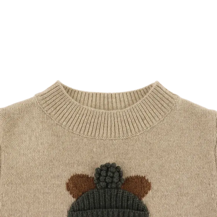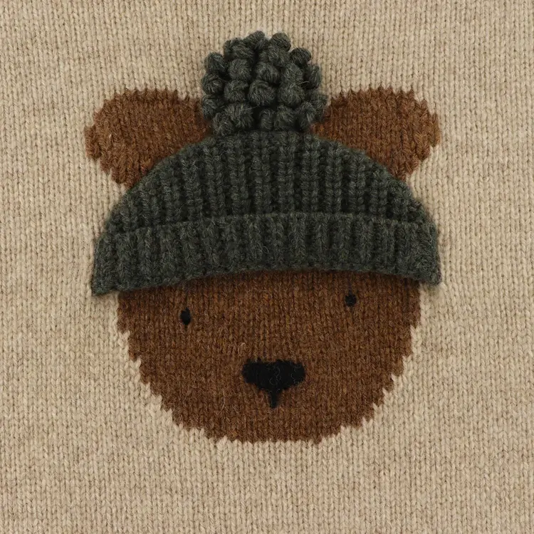 The Denn Sweater is a winter essential. Easy to slip on, featuring a playful front bear embroidered character with a cute fluffy pom-pom, your little one won't want to take it off. Details Main: 100% Merino wool. Detail: 100% Merino wool
