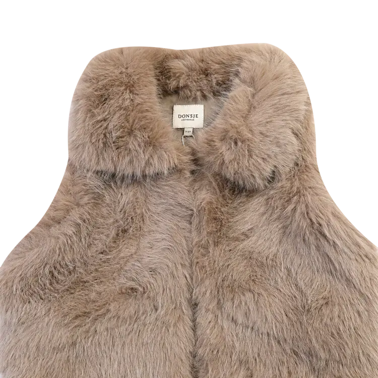 Fuzzy and fabulous! The Roswita gilet is a cosy layering essential. Its soft, fluffy texture adds warmth and charm to any outfit, making it perfect for chilly days. Details Main: 100% Polyester. Lining: 100% Cotton