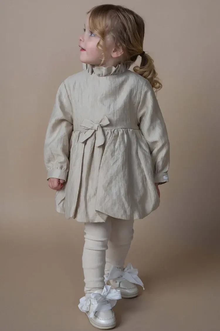 Magic awaits! Step into the festive season in style with the stunning Hansje dress. This delicate dress features a beautiful full skirt, high collar, and long sleeves. It includes concealed snap fasteners along the back and a decorative bow for added charm.