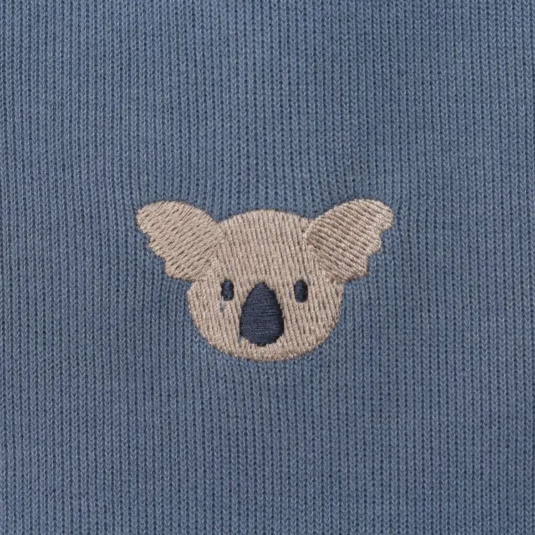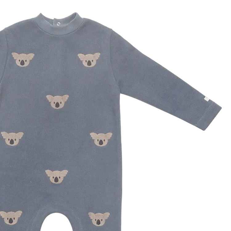 Let's have some koala-ty time! The charming Phlyn onesie is the perfect piece for exploring the world around you. Designed with comfort in mind, it features snap fasteners along the back, crotch, and legs, as well as delicate embroidered embellishments.