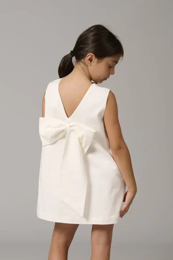 Sleeveless, soft dress for girls with clean lines. It is embellished with an elegant bow on the back. Composition: 98% CO, 2% EA Lining: 100%