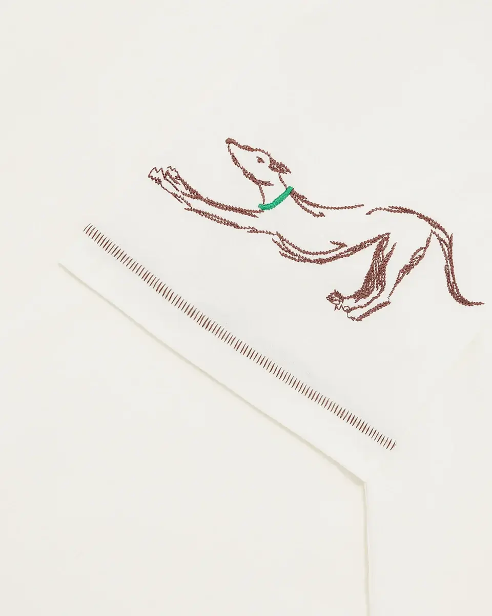 This off-white 100% cotton jersey t-shirt with a ribbed neckline is embroidered with the Club House motif on the front and on the sleeves.